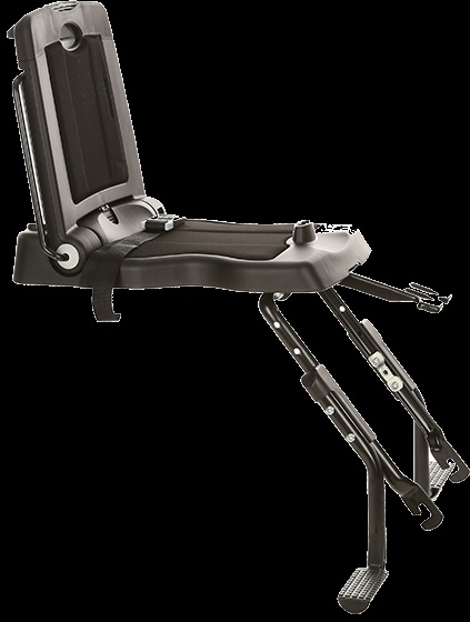 Fotelik jest łatwy do zainstalowania na każdym rowerze. Oparcie po złożeniu zmienia się w zapasowy bagażnik. Naciskając szary przycisk na górze z tyłu można złożyć oparcie i otworzyć go ponownie.
