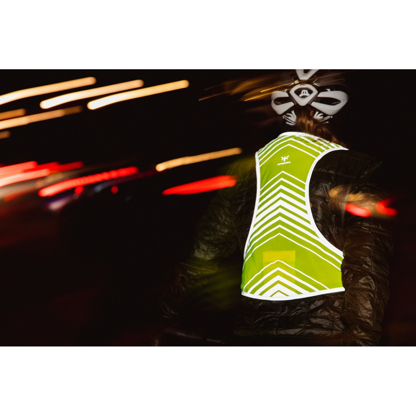 Bardzo lekka kamizelka odblaskowa Apidura Packable Visibility Vest. Kamizelka odblaskowa zgodna z normą EN 17353. Jest to zatem pełnoprawna kamizelka odblaskowa, która jednocześnie jest oddychająca i łatwa do spakowania do zintegrowanej kieszeni. Jest to kamizelka zaprojektowana specjalnie dla rowerzystów i zawodników długodystansowych. Wykonany jest z elastycznej siateczki, dostępny w dwóch rozmiarach (S/M, L/XL) i można go również dociągać za pomocą zapięcia na klatce piersiowej (można go również przesuwać w 7 różnych pozycjach). Kamizelka ma anatomiczny krój i idealnie pasuje do obcisłej koszulki rowerowej.