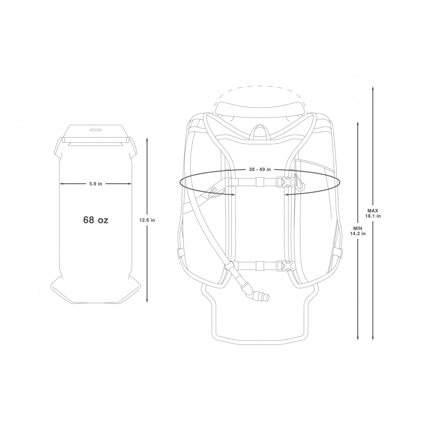 Plecak z systemem nawadniającym jest dostępny w dwóch rozmiarach, aby zapewnić idealne dopasowanie do każdej budowy ciała. Regulowane paski mostkowe zapewniają wygodne dopasowanie, a dodatkowa regulacja boczna zapewnia brak niepożądanych ruchów podczas jazdy. Pętle do organizacji węża hydracyjnego i klips magnetyczny utrzymują wąż w pobliżu, a jednocześnie na uboczu.
