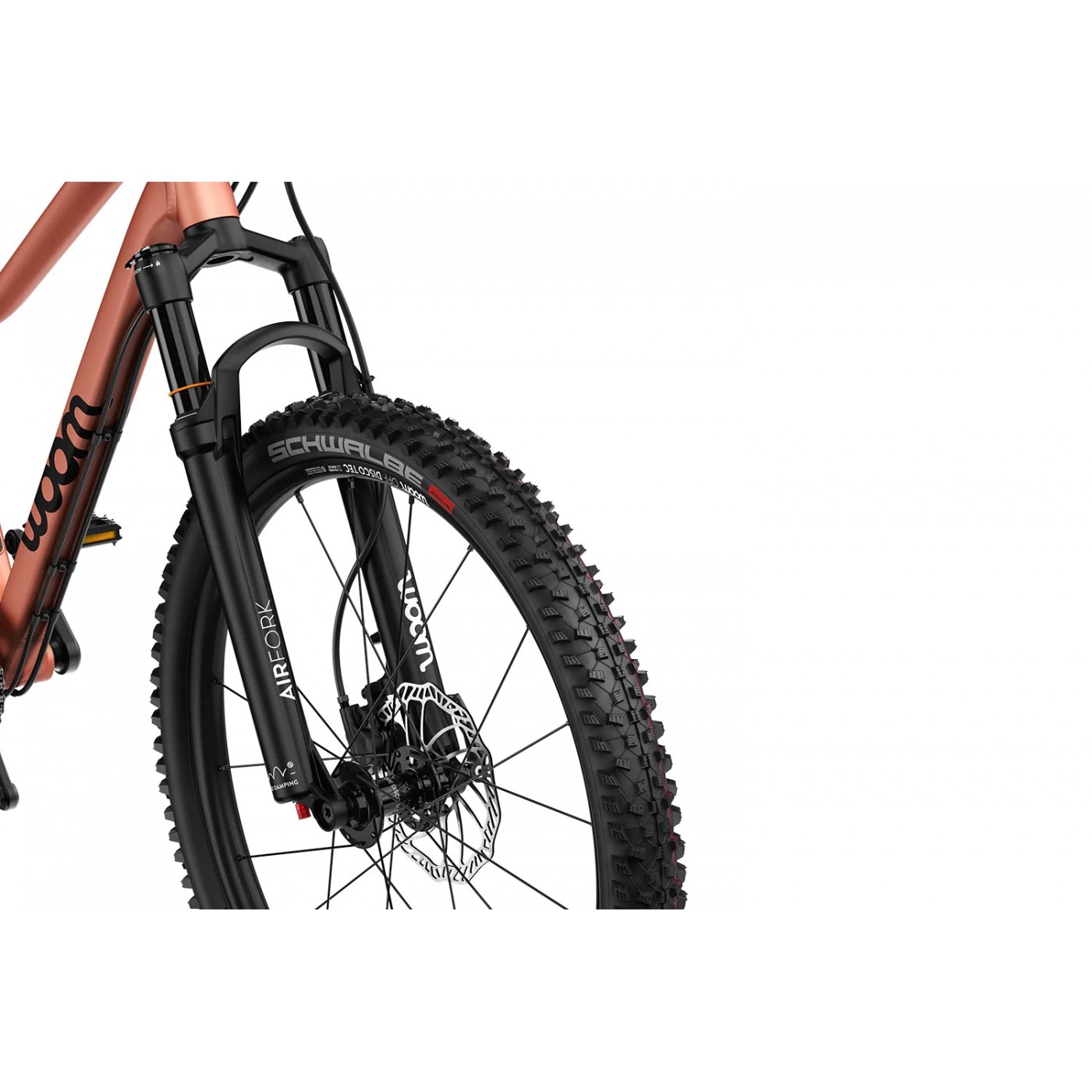 | Opony: | Opony 24 x 2,35″ Schwalbe Rocket Ron z mieszanką gumową ADDIX SPEED i technologią tubeless easy, możliwość przebudowy na zestaw bezdętkowy |